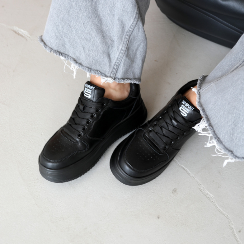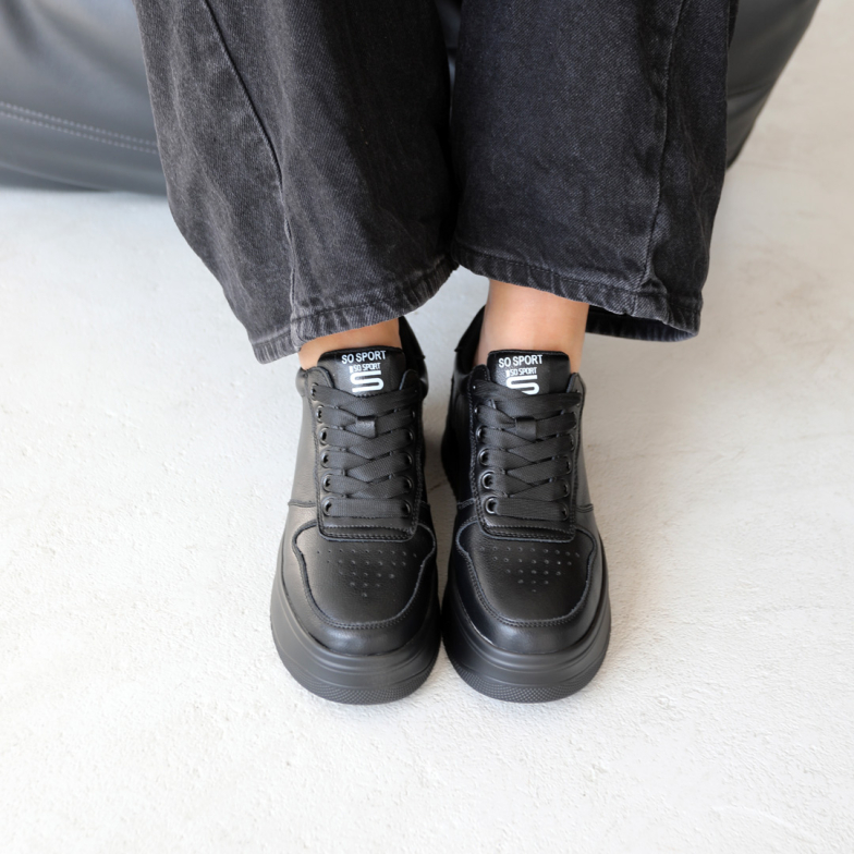 Дуже стильні та зручні жіночі кеди 586427 - найкращий вибір для повсякденного носіння. Завдяки універсальному чорному забарвленню вони гармонійно поєднуватимуться з будь-яким образом. Виготовлені з натуральної шкіри, тому вирізняються якістю та практичністю. Внутрішня підкладка текстильна, устілка - меморі, додає комфорту під час ходіння. Масивна підошва забезпечує неперевершену зручність, її висота - 4 см. Пара дуже легка, вага півпарку - 290 грам.