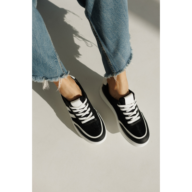Чорні білі універсальні кеди виготовлені з високоякісної екошкіри та текстилю. Внутрішня підкладка з екошкіри, просиліконена устілка забезпечить вам комфорт протягом дня. Кеди зручні, базові та легкі. За рахунок свого дизайну чудово підійдуть до кожного образу та будь-якого гардеробу.