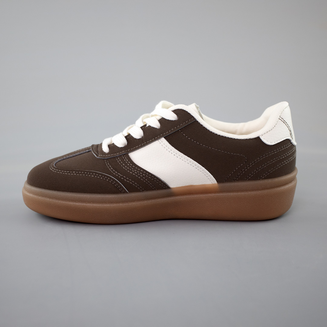 Коричнево-сірі універсальні кеди виготовлені з високоякісної екозамші. Внутрішня підкладка текстильна, просиліконена устілка забезпечить вам комфорт протягом дня. Кеди зручні, базові та легкі. За рахунок свого дизайну чудово підійдуть до кожного образу та будь-якого гардеробу.