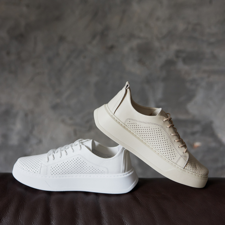 Оберіть натуральну красу та стиль - оберіть наші жіночі кеди з перфорацією з натуральної шкіри у білому кольорі, щоб створити вишуканий образ, що вразить своєю елегантністю.