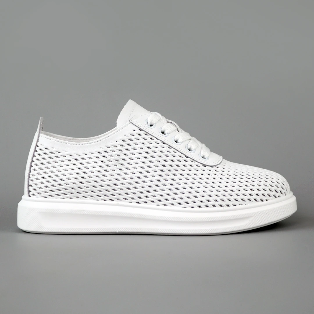 Оберіть натуральну красу та стиль - оберіть наші жіночі кеди з перфорацією з натуральної шкіри у білому кольорі, щоб створити вишуканий образ, що вразить своєю елегантністю.