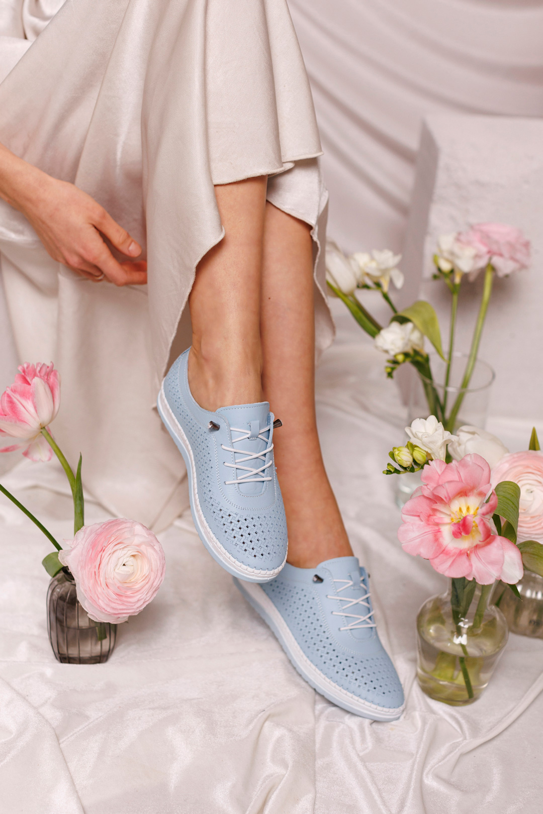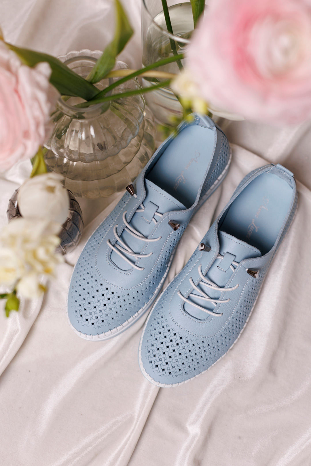Забезпечити неперевершений комфорт і при цьому виглядати витончено та стильно – ось головні критерії, яких прагнуть усі модниці цього сезону. Жіночі кеди в блакитному кольорі не лише допоможуть вам у цьому, а й підкреслять красу будь-якого образу, адже модель виконана з натуральної шкіри, з перфорацією, що забезпечить чудову повітропроникність. Прорезинена шнурівка дозволяє швидко та легко взуватися. Підошва - EVA, зносостійка, її висота - 2 см. Чудово підійдуть як для щоденного використання, так і на вихід, з ними кожен образ буде вдалим.