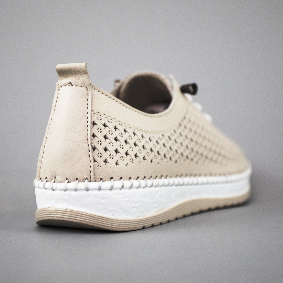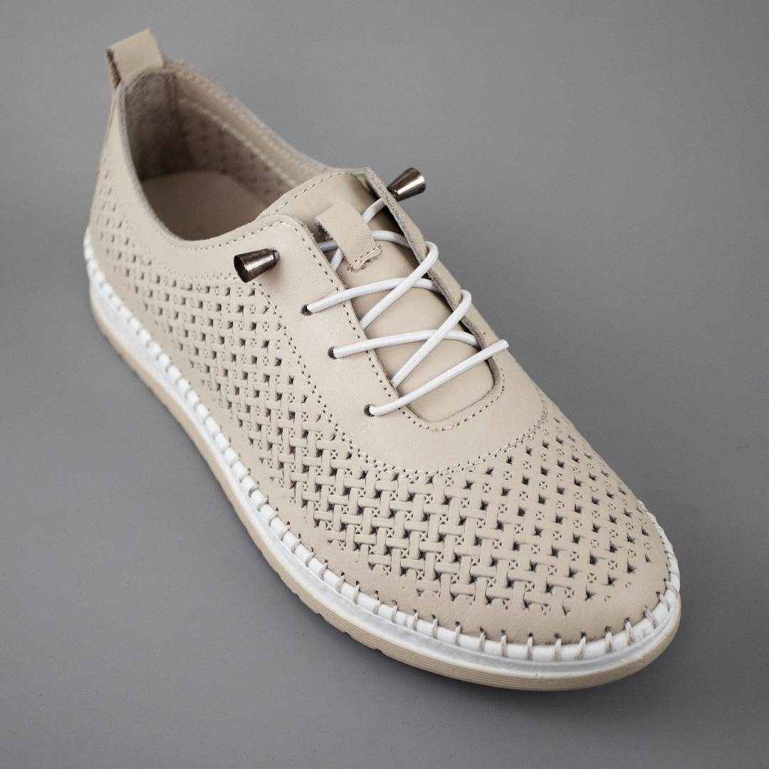 Забезпечити неперевершений комфорт і при цьому виглядати витончено та стильно – ось головні критерії, яких прагнуть усі модниці цього сезону. Жіночі кеди в універсальному бежевому кольорі не лише допоможуть вам у цьому, а й підкреслять красу будь-якого образу, адже модель виконана з натуральної шкіри, з перфорацією, що забезпечить чудову повітропроникність. Прорезинена шнурівка дозволяє швидко та легко взуватися. Підошва - EVA, зносостійка, її висота - 2 см. Чудово підійдуть як для щоденного використання, так і на вихід, з ними кожен образ буде вдалим.