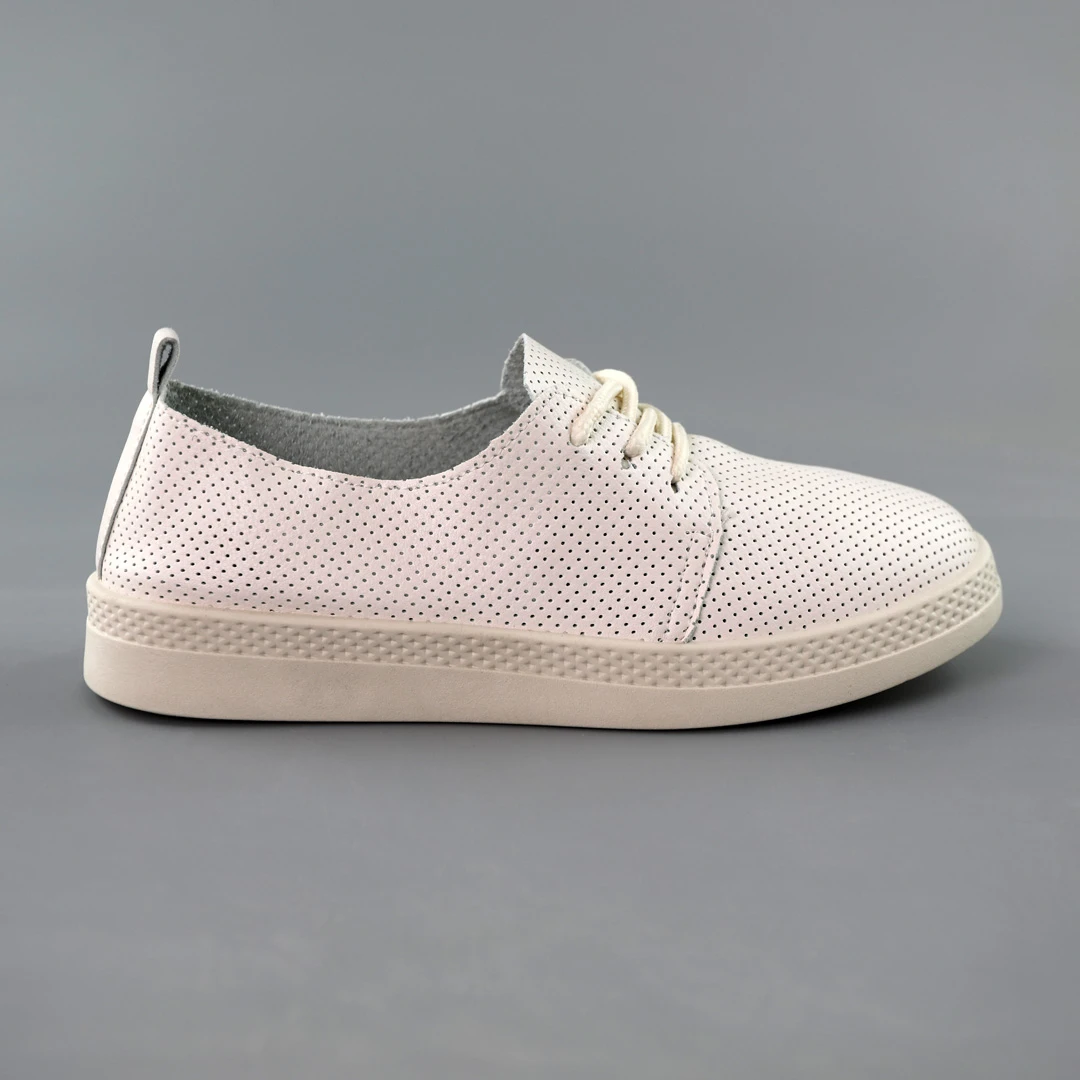 Забезпечити неперевершений комфорт і при цьому виглядати витончено та стильно – ось головні критерії, яких прагнуть усі модниці цього сезону. Жіночі кеди в ніжному молочному кольорі не лише допоможуть вам у цьому, а й підкреслять красу будь-якого образу, адже модель виконана з екошкіри, з перфорацією, що забезпечить чудову повітропроникність. Кеди легенькі, вага півпарку всього 300 грам. Підошва - EVA, зносостійка, її висота - 3 см. Чудово підійдуть як для щоденного використання, так і на вихід, з ними кожен образ буде вдалим.