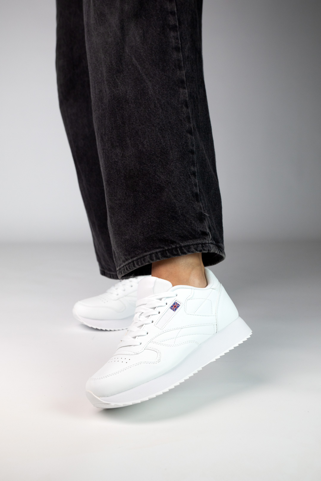 Пропонуємо вам жіночі кросівки в базовому білому кольорі, що відрізняються актуальним дизайном та високою комфортністю. Ця стильна пара виготовлена з якісної екошкіри, що надає їй елегантності та забезпечує практичність. Усередині вас приємно здивує підкладка текстильна, яка надає комфорту при носінні, зручна устілка з текстилю забезпечує додаткову підтримку та забезпечує почуття м'якості під час кожного кроку. Пара легка, що робить їх ідеальним варіантом для тривалих прогулянок. Розмірність моделі: маломірки Верх: екошкіра Внутрішня підкладка: текстиль Устілка: текстиль Висота підошви: 3 см