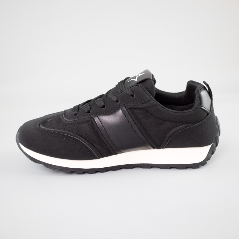 Чорні універсальні кросівки виготовлені з високоякісної екошкіри та текстилю. Внутрішня підкладка текстильна та меморі устілка забезпечить вам комфорт протягом дня. Кросівки зручні, базові та легкі. За рахунок свого дизайну чудово підійдуть до кожного образу та будь-якого гардеробу.