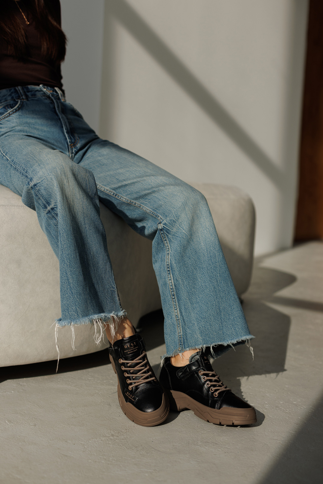 Одягніть ці чорні кросівки для того, щоб надати своєму образу завершений і стильний вигляд.