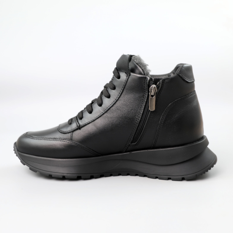 Жіночі шкіряні кросівки вразять вас за допомогою елегантного поєднання натуральної шкіри та універсального кольору. Вони виглядають ідеально і підкреслюють ваш стиль і смак. Але головна перевага цих кросівок - це їхнє внутрішнє утеплення з натурального хутра. Вони стануть найкращими союзниками в зимовий період, надаючи вам тепло та комфорт. Ця пара на шнурівках та замку, тому чудово фіксуються на нозі. Ви завжди будете готові до пригод і зустрічей, маючи ці надійні та стильні кросівки.