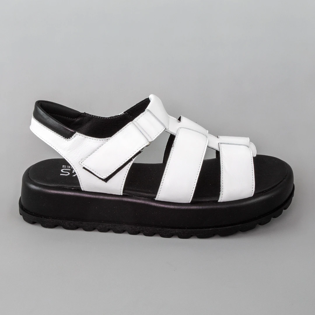 Відкрийте для себе безмежний комфорт та елегантність з нашими жіночими сандаліями, виготовленими з високоякісної натуральної шкіри у білому кольорі на чорній підошві . Ці сандалі - втілення легкості та стилю, ідеальний вибір для сучасної жінки, яка цінує комфорт та моду. Білий колір надає їм натурального та елегантного вигляду, що легко поєднується з будь-яким образом.