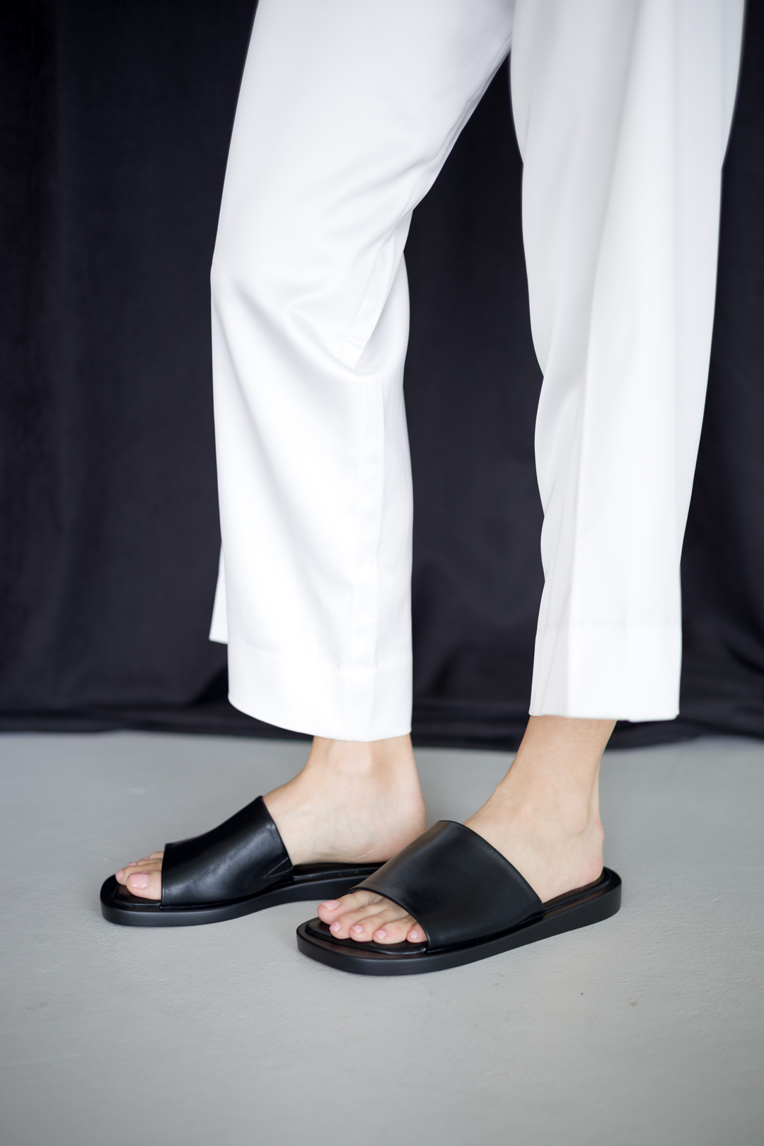Відкрийте для себе безмежний комфорт та елегантність з нашими жіночими шльопанцями, виготовленими з високоякісної екошкіри у чорному кольорі. Ці шльопанці - втілення легкості та стилю, ідеальний вибір для сучасної жінки, яка цінує комфорт та моду.