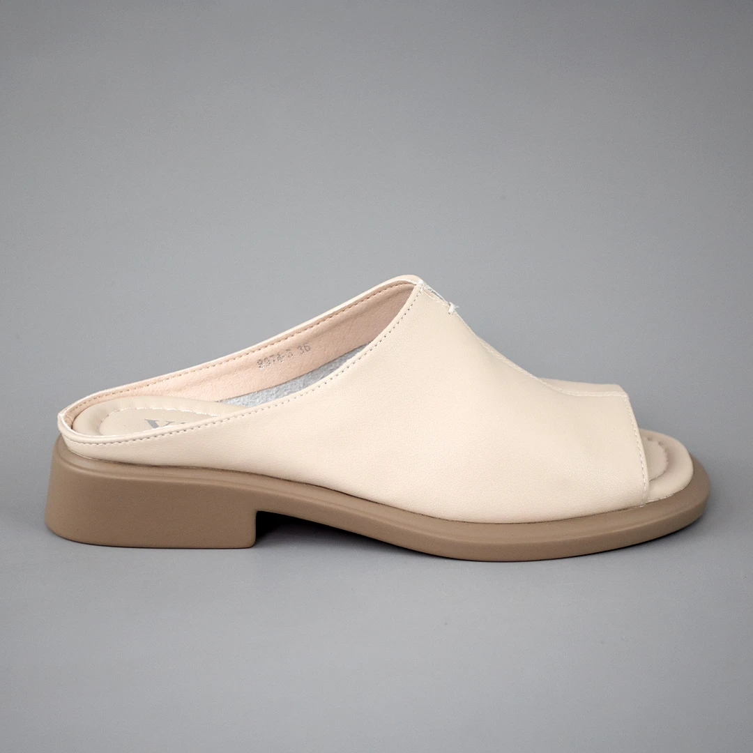 Відкрийте для себе безмежний комфорт та елегантність з нашими жіночими шльопанцями мюлями, виготовленими з високоякісної натуральної шкіри у бежевому кольорі. Ці шльопанці - втілення легкості та стилю, ідеальний вибір для сучасної жінки, яка цінує комфорт та моду.