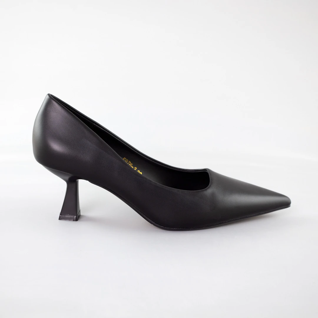 Пориньте у стиль та елегантність з нашими жіночими туфлями в чорному кольорі на середньому підборі. Ці туфлі виготовлені з високоякісної екошкіри, яка не лише додає їм легкості, але й підкреслює ваш вишуканий смак та відданість принципам етичної моди.