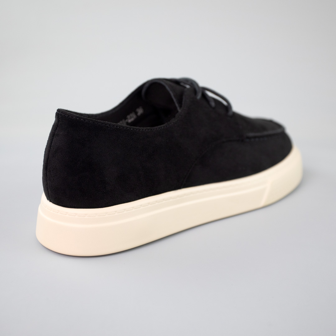 Виберіть наші чорні туфлі з екозамші та насолоджуйтесь поєднанням стилю та зручності на кожному кроці. Ця пара надасть вашому образу вишуканості, підкреслюючи ваш тонкий смак і стиль.