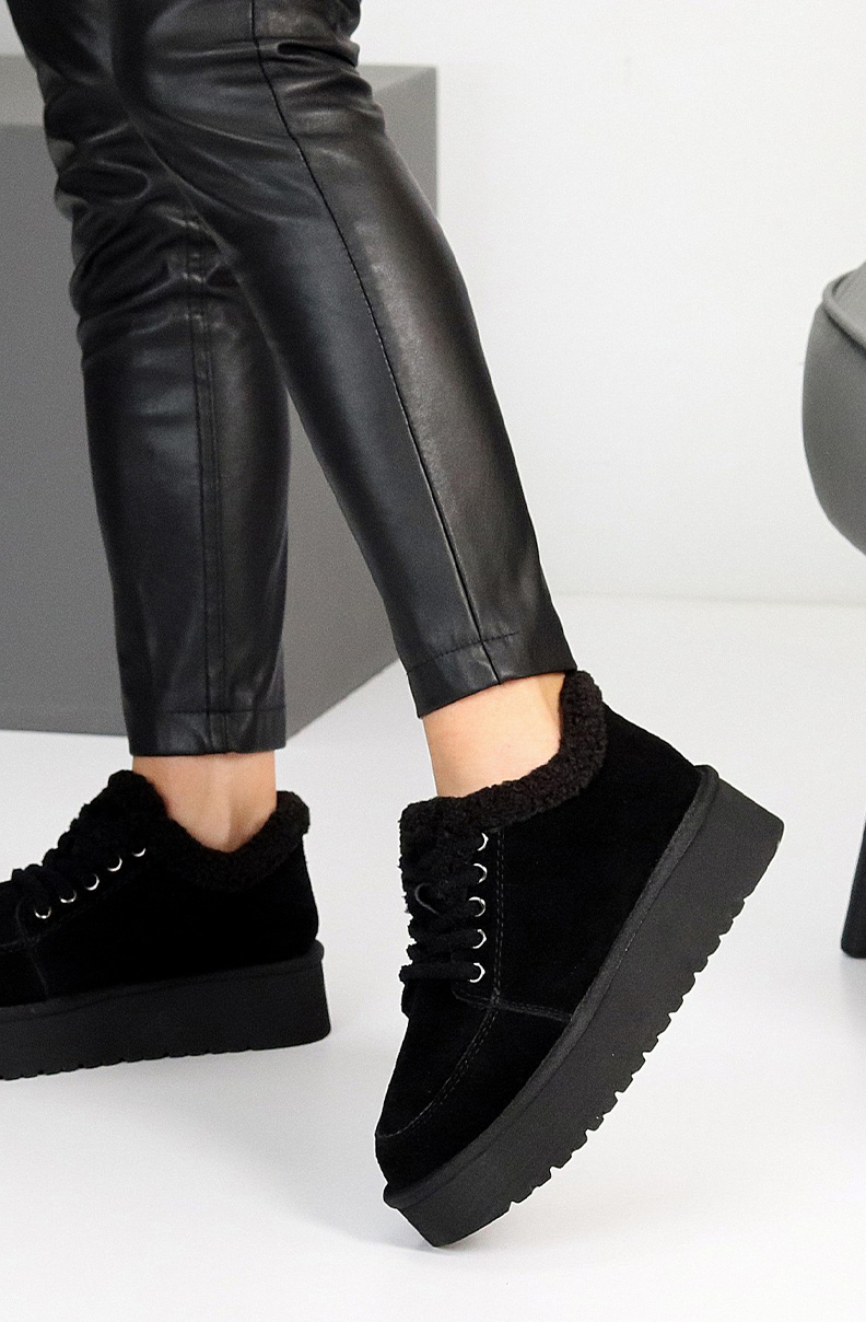 Угги жіночі замшеві хутро 594025 Чорні