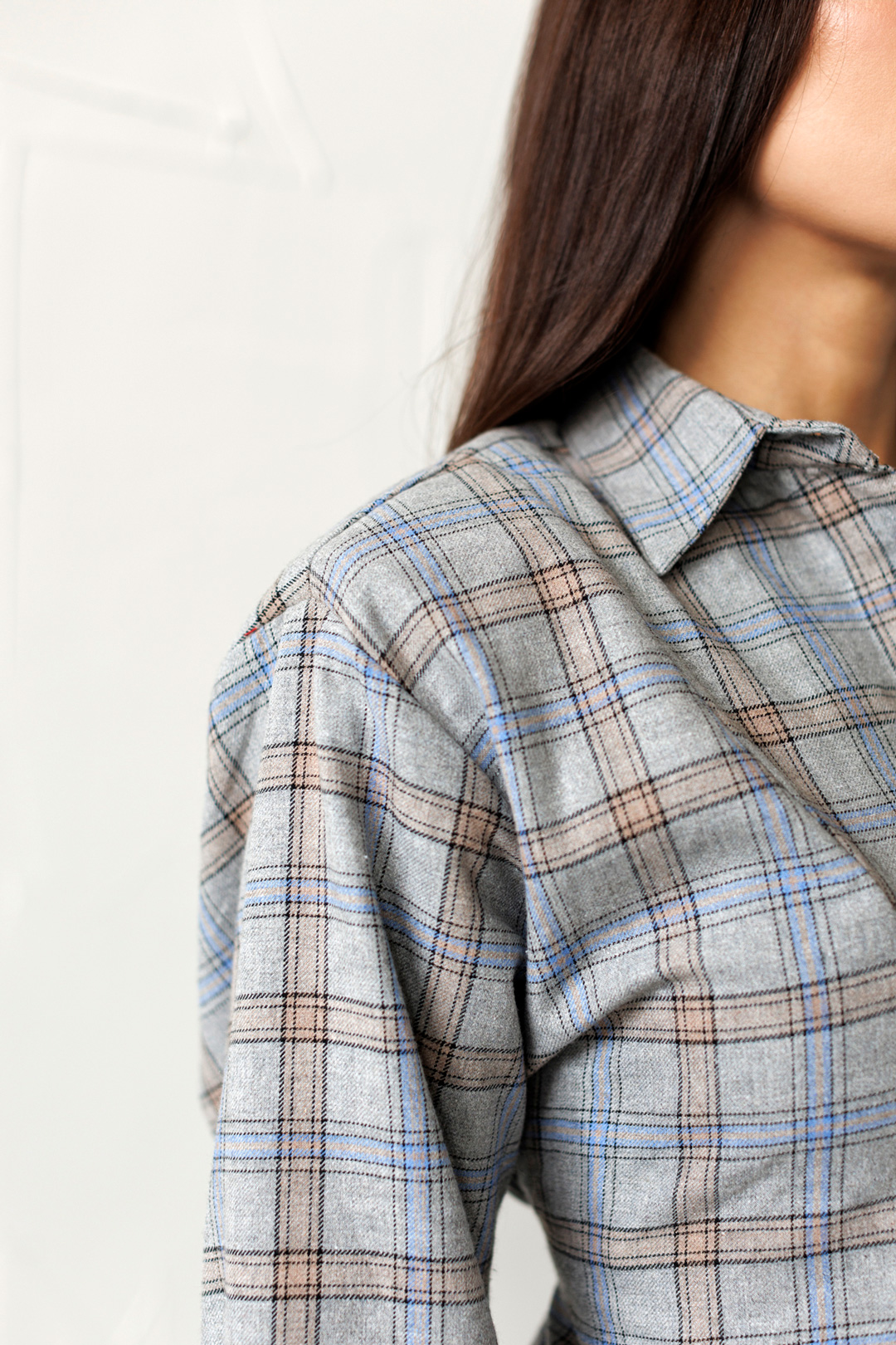 Принт: класична клітинка (сірий, блакитний, коричневий).